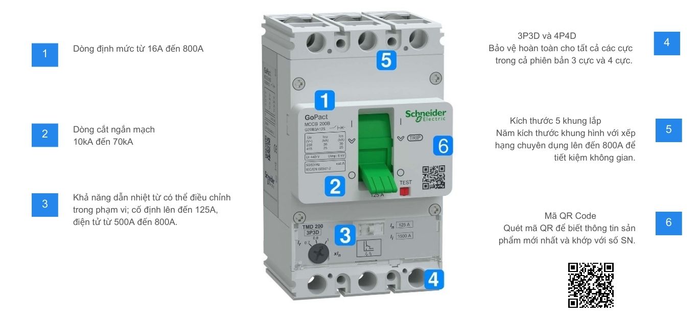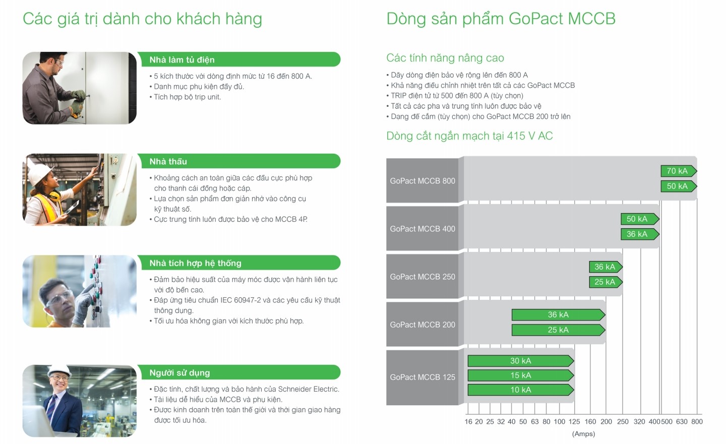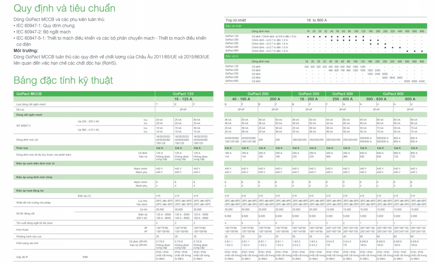 Giới thiệu dòng sản phẩm được đơn giản hóa cho các hệ thống phân phối điện tiêu chuẩn. Chất lượng cao đảm bảo đặc tính đáng tin cậy ngay cả trong các điều kiện hoạt động khắc nghiệt và bộ phụ kiện toàn diện, GoPact MCCB giúp đơn giản hóa công việc của bạn.