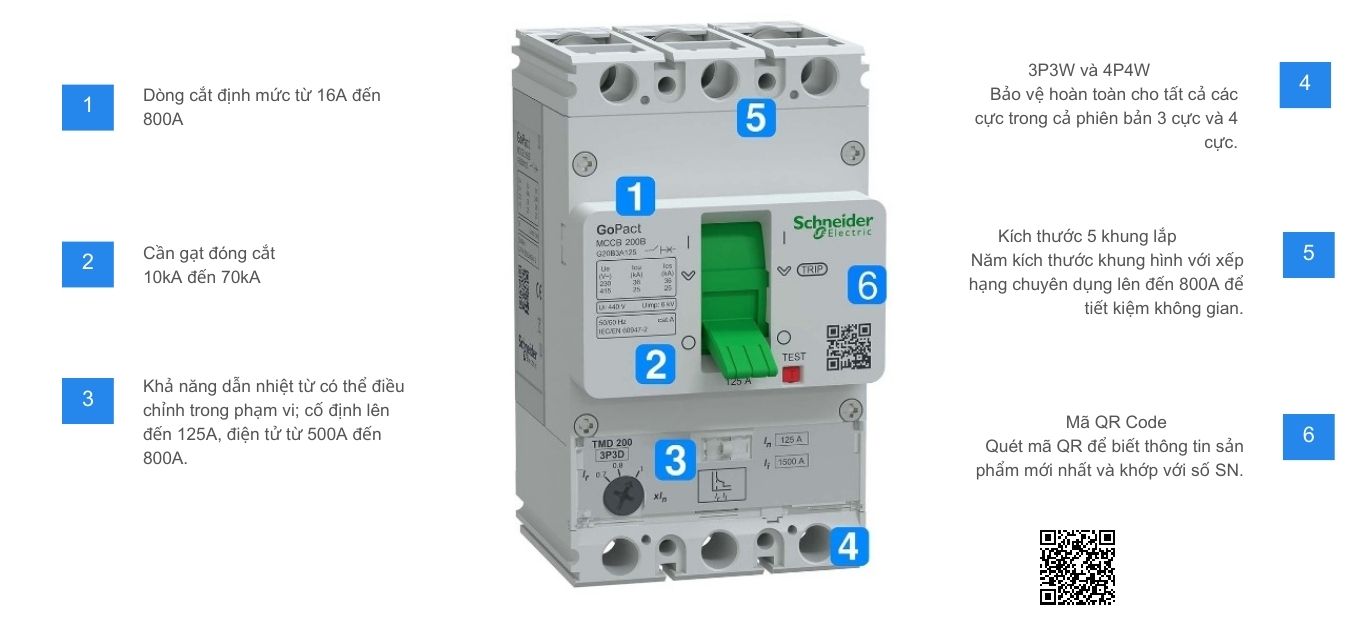 Giới thiệu dòng sản phẩm được đơn giản hóa cho các hệ thống phân phối điện tiêu chuẩn. Chất lượng cao đảm bảo đặc tính đáng tin cậy ngay cả trong các điều kiện hoạt động khắc nghiệt và bộ phụ kiện toàn diện, GoPact MCCB giúp đơn giản hóa công việc của bạn.