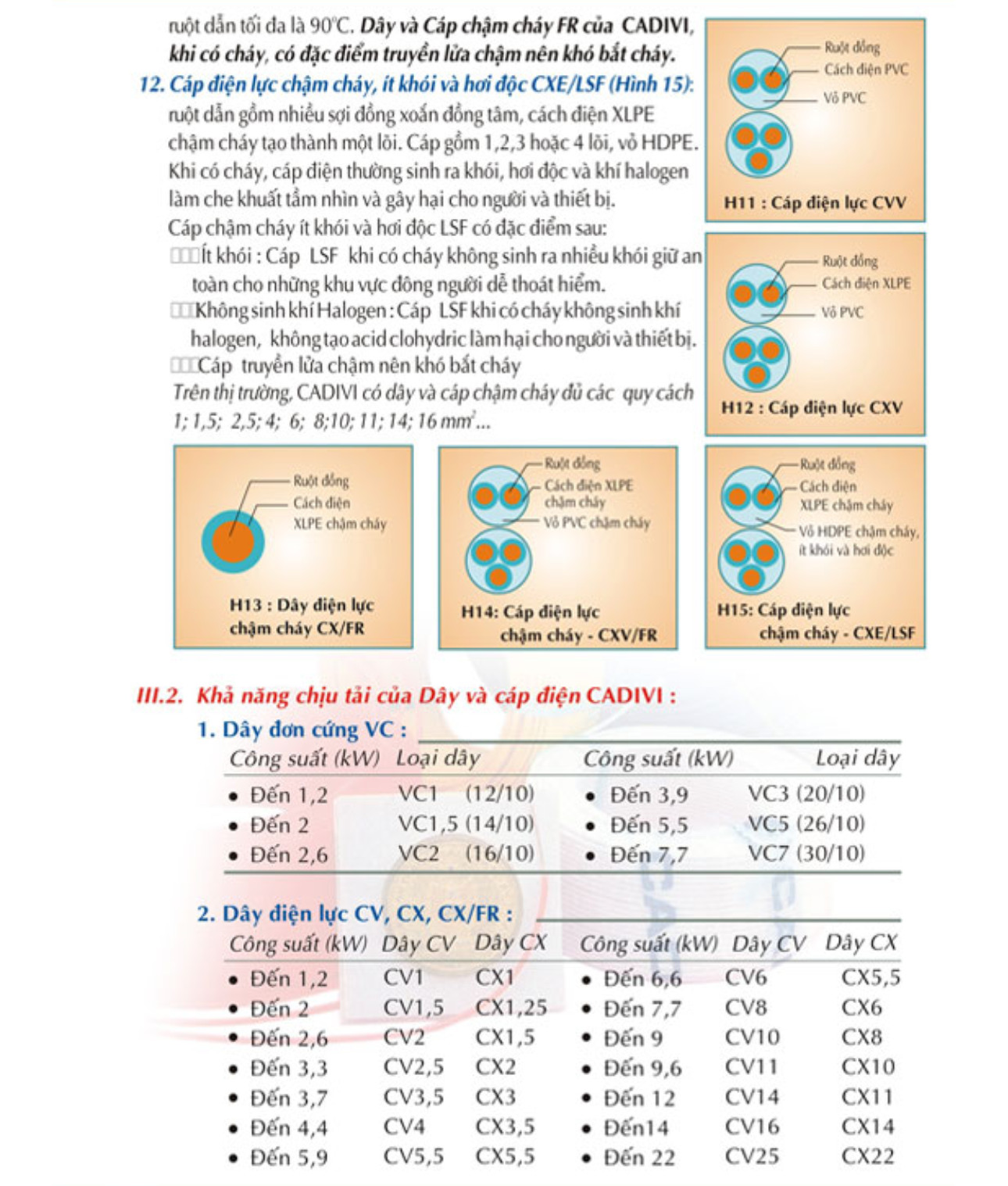 mức cho phép thì phải chọn cáp có tiết diện ruột dẫn lớn hơn.