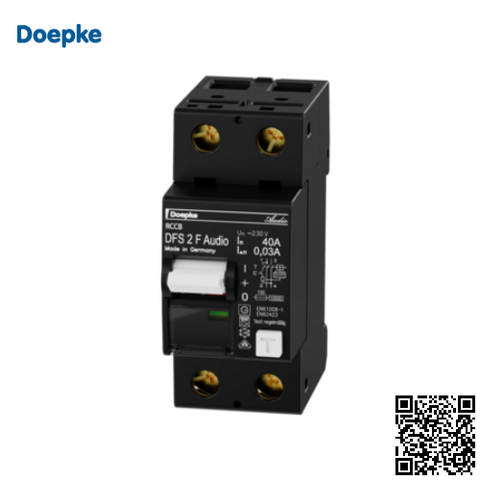 Residual current circuit-breakers (RCCB) switch the power supply off if dangerous high residual currents occur. DFS 2 are two-terminal residual current circuit-breakers for single-phase networks. In the standard design, the compact devices are just two module widths wide. They are available with many different residual current types and variants for rated currents up to 125 A. The large two-tier terminals can also accommodate large conductor cross-sections. The trip position of the multi-function toggle switch simplifies fault-finding. The free label software helps in the labelling process. Type F switches are mixed frequency sensitive. They protect against pulsating and AC residual currents as well as residual currents with mixed frequencies that differ from 50 Hz independent of the mains voltage. RCCB of the DFS Audio series are optimised for protecting electric circuits that are connected to high-quality audio systems, such as record players, network streamers, amplifiers or sound systems for theatres and cinemas. They have a low-impedance design to enable an unrestricted current flow and undisturbed sound quality.